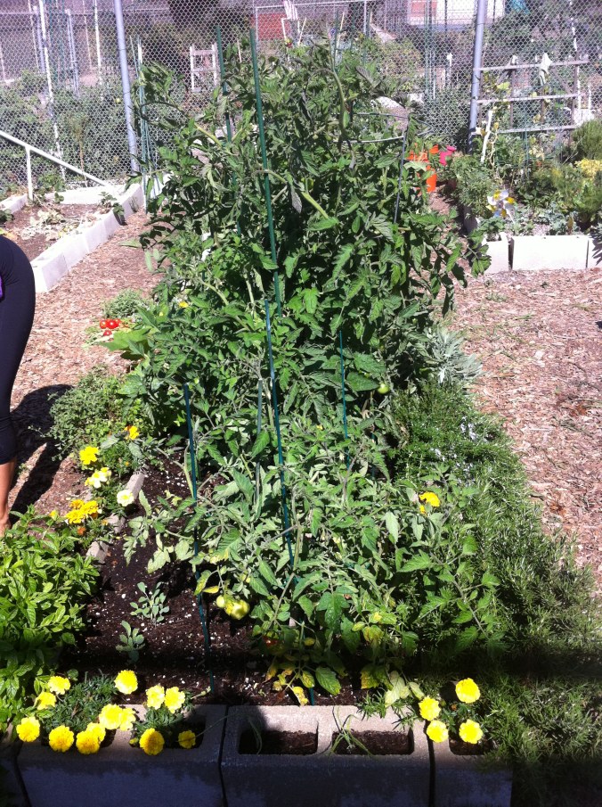 • Along the same lines, we learned to be mindful where you plant things with our tomato plants. We have an heirloom and a cluster tomato plant that we got from Growing Greats. At one of their educational seminars, they gave a tomato plant away to all who attended. So Chelsea and I both got one and planted them in our garden. We planted the cluster tomato plant where the broccoli used to be and the heirloom tomato plant (my favorite kind of tomato) in the middle where the cauliflower failed miserably. The Heirloom plant has taken over. It’s almost as tall as I am. However, it is the biggest producer from our garden so far.