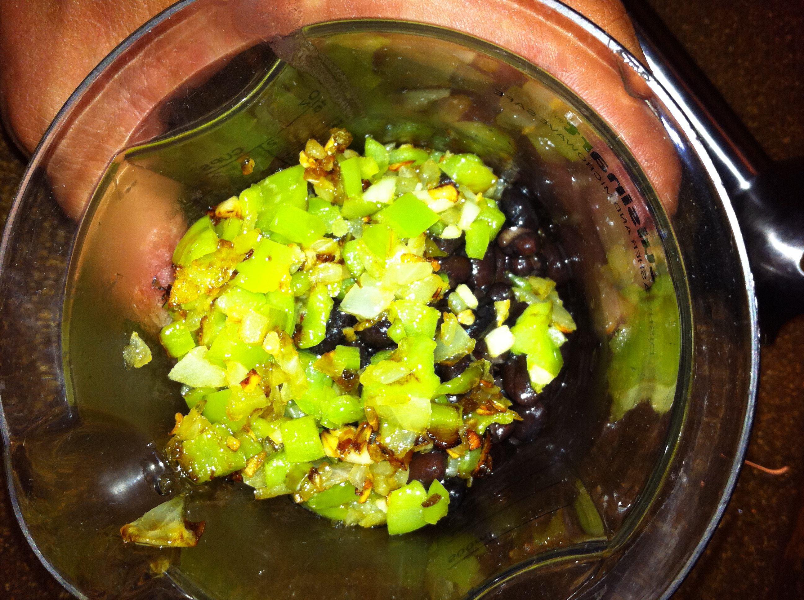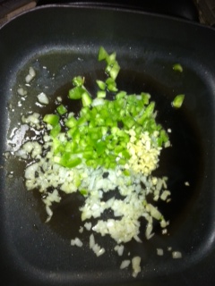- Sautee bell peppers, onion, garlic, zucchini (anything else you like)
